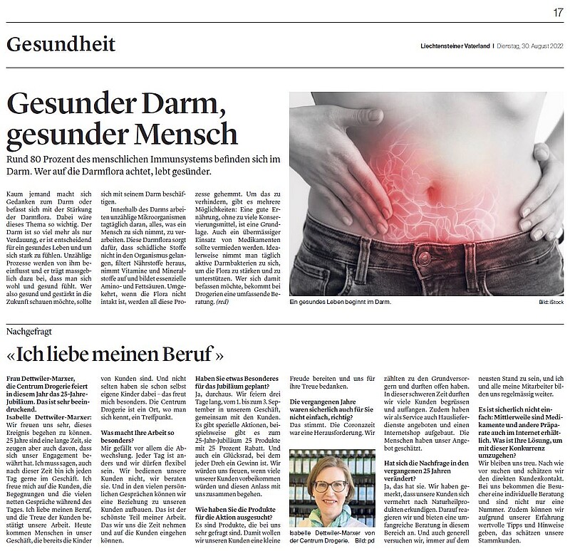 Seit 1997 schätzen die Kunden einerseits das grosse Gesundheits-Sortiment, das von den Bedürfnissen des Kleinkindes bis hin zum Seniorenalter reicht, und andererseits die individuelle und zuvorkommende Beratung in allen Fragen rund um das persönliche Wohlbefinden.